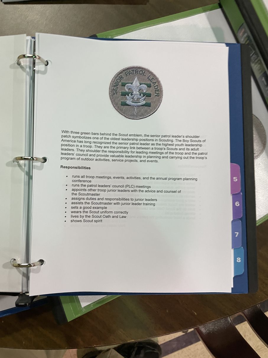 - Built a Binder Set for the Patrol Leadership Council (PLC)